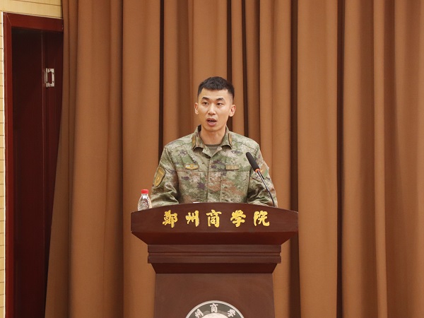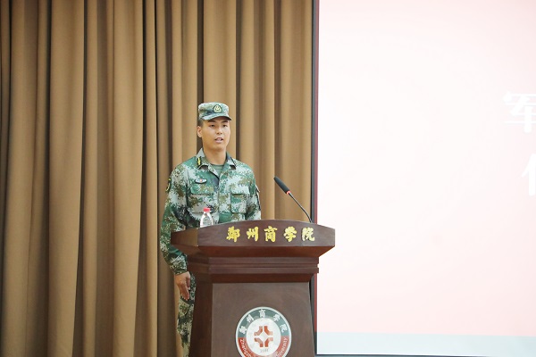 信工学院张培作为新生辅导员代表发言,表示作为一名新生辅导员,要充分引导学生领会创办人王广亚先生的办学初心,汲取校训的精神内核;要深入到学生的日常训练和生活中,面对好每一位学生、解决好每一个问题,让学生安心军训;要和教官紧密携手配合,成为彼此的好帮手。