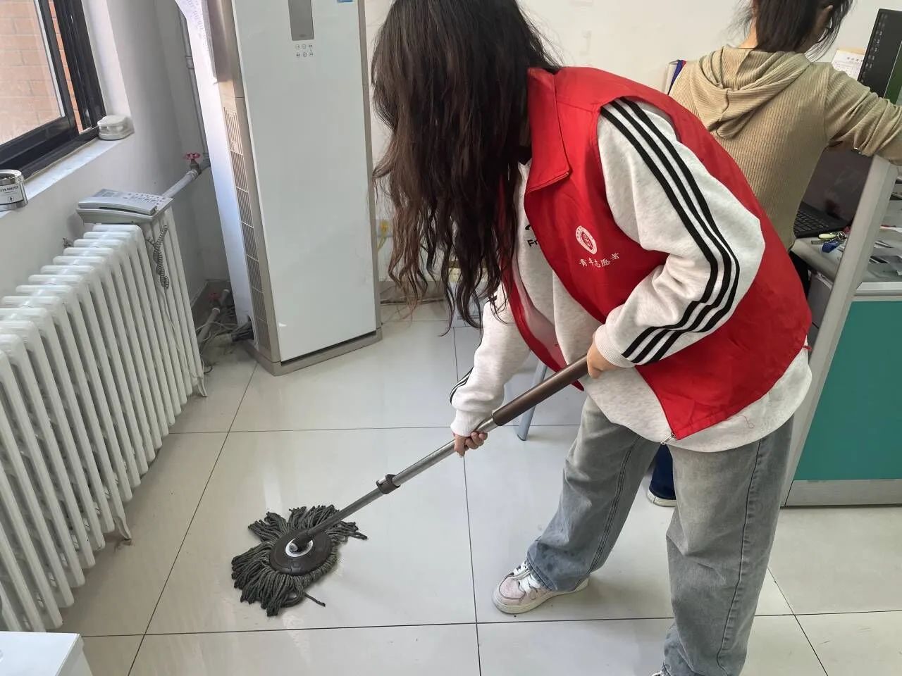 最后,在大家的踊跃参与下,用劳动工具将办公室地面及基础设施进行全方面清洁。同学们在此次清扫活动中也纷纷表示:在今后会更加珍惜他人的劳动成果,为创建文明校园贡献出自己的青春力量,共同营造“爱国、爱校、宁静、好学、礼让、整洁”的学习和工作环境,发挥自身模范作用,带动身边同学共同奋斗。