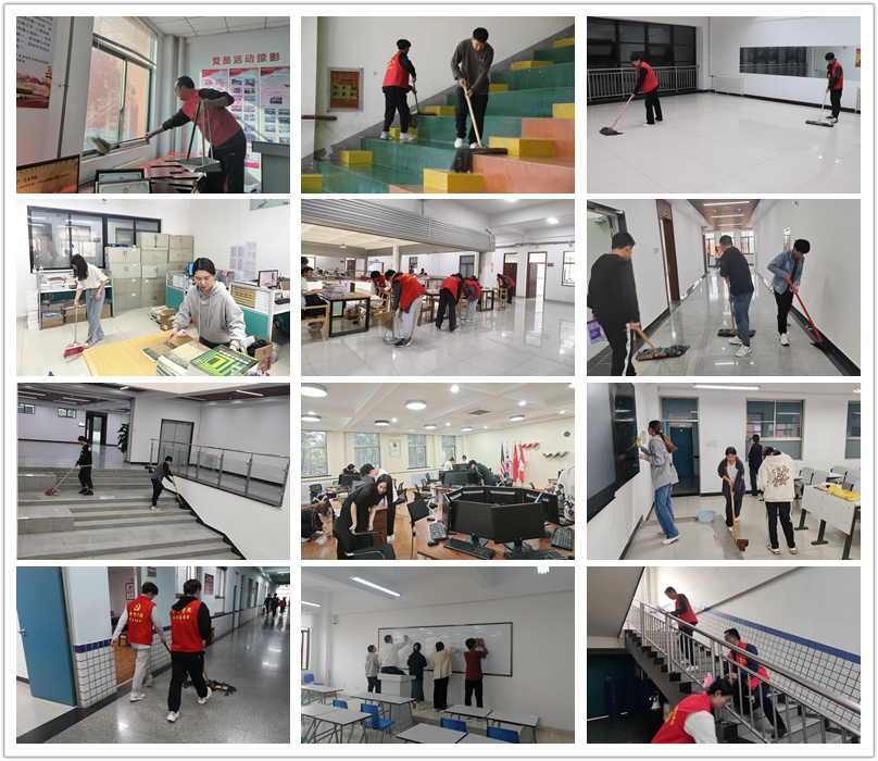 本次活动楼管员按照教学楼公区卫生标准对卫生间、楼道、楼梯间进行清扫消毒。同时,各学院相继开展了教学楼大扫除活动,全体师生积极行动起来,从细节入手,从小事做起,在各学院党团书记带领下,老师和学生们分工合作、密切配合,认真清扫教学楼公区、教室、办公室等卫生死角,进一步引导学生在实践中学、做、悟,展现劳动风采、体悟劳动艰辛、感受劳动快乐。接下来,学务处将联合各学院持续做好“一分钟环保”。