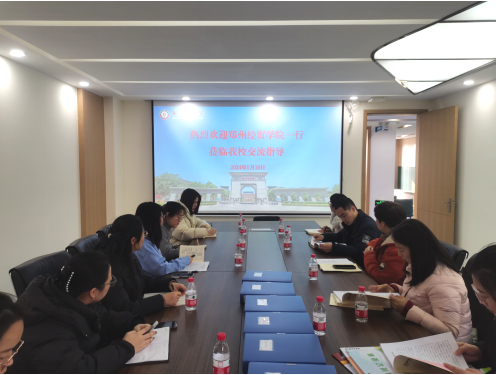 1月10日上午,郑州经贸学院学生工作处副处长张烨、李深圳及心理中心教师一行7人莅临点点官网交流学习,点点官网学务处处长路程、心理健康教育教师陪同。