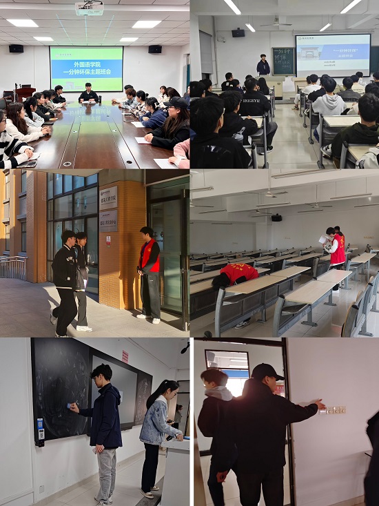 3月,各学院分别开展了“一分钟环保”主题班会,讲解一分钟环保的意义以及具体实施开展的路径,要求同学们不带食品以及与学习无关的物品带入教室,课后把身边的杂物随手带走,桌净兜空,离开教室时关闭多媒体设备及门窗。做到一分钟环保从思想上引导学生认同,在行动上引导学生落实。