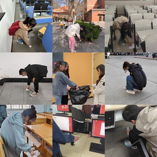 根据劳卫科三月份工作安排,各学院持续开展“一分钟环保”,各学院组织得力、广泛动员,全体师生行动起来,从细节入手,从小事做起,不将食品带入教学楼,课间下课及课后自觉捡拾身边杂物,确保教室卫生整洁,下课及时关闭电源,爱护楼内的用电设施,劳卫科常态化对各楼教室进行巡查督导,成效显著。