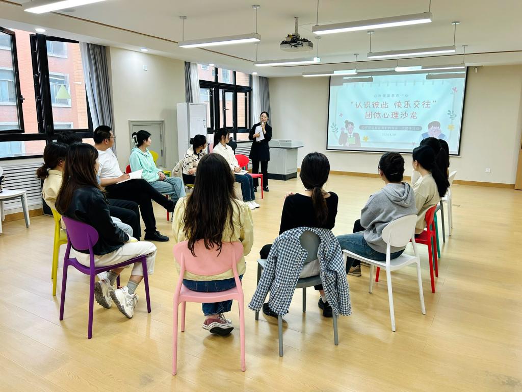 心理健康教育中心于4月19日下午在团体辅导室组织开展了主题为 “认识彼此,快乐交往”第一次团体沙龙。本次活动旨在通过一系列富有趣味性和互动性的活动,帮助新任兼职教师更好地相互了解,增进友谊,为未来的教育教学工作营造和谐愉快的氛围。