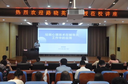 为进一步加强辅导员队伍专业化建设,切实提升学工队伍心理健康教育工作能力,5月17日下午,由学务处主办,艺术学院承办的“绘画心理技术在辅导员工作中的应用”主题专家讲座在图书馆五楼报告厅顺利开展。本次讲座由河南省心理健康教育名师工作室主持人路晓英副教授主讲,全体辅导员参加。