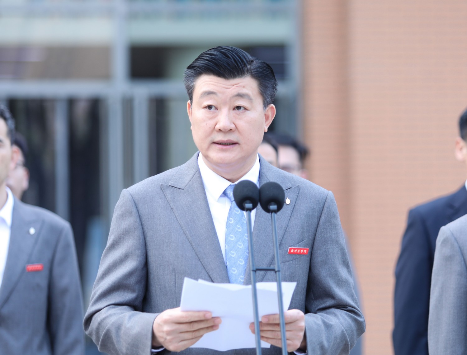 校长吴泽强在讲话中代表全校师生对第十九届国旗护卫队光荣完成使命表示祝贺,对所有国旗卫士的辛苦付出和努力表示感谢。吴校长向国旗护卫队和同学们提出了三点希望:一是要擦亮青春底色,熔铸理想之基。矢志不渝朝着崇高目标接续奋进,让爱国主义的伟大旗帜始终在心中飘扬,让青春在实现中华民族伟大复兴的中国梦中绽放出绚丽光彩。二是要擦亮品行底色,坚持修身之要。持续完善人格发展,打牢道德根基,磨炼意志品质,以良好的品德修养在人生道路上走得更正、行得更远。三是要擦亮奋进底色,永葆进取之心。希望同学们牢牢抓住人生成长发展的黄金时期,做好职业生涯规划,专心致志求学,孜孜不倦奋进,在学习中启迪智慧,在磨砺中增长才干,在实践中提升技能,为实现中华民族伟大复兴贡献青年力量。