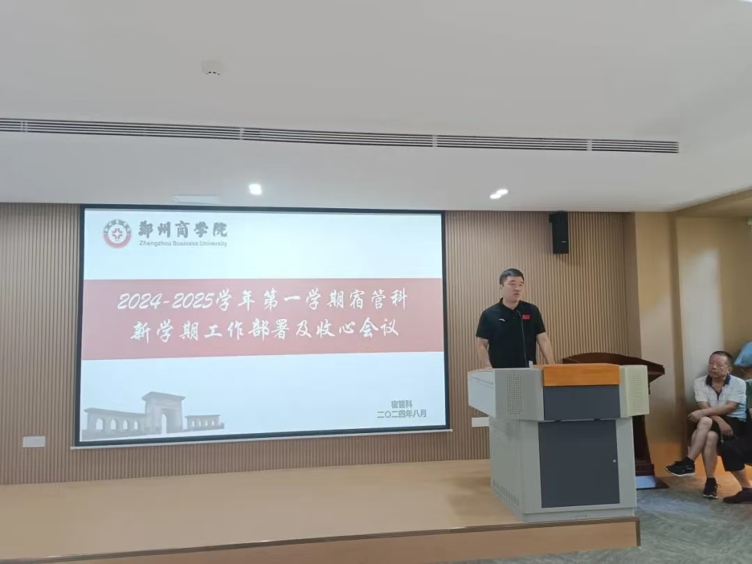 新学期,新起点,8月27日下午,学务处宿管科组织全体宿管老师召开新学期工作部署暨收心大会。贺萌科长首先对暑期值班服务在一线的宿管老师们的辛苦付出表示肯定,对全体宿管老师提前返校上岗表示感谢。