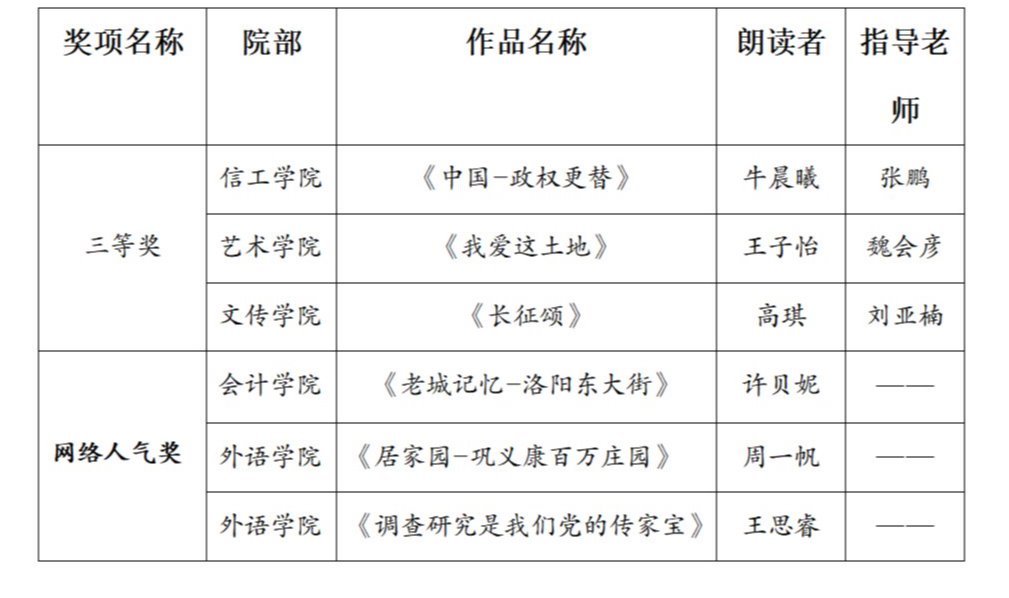 第五届河南省高校大学生主题朗诵大赛获奖名单(个人)