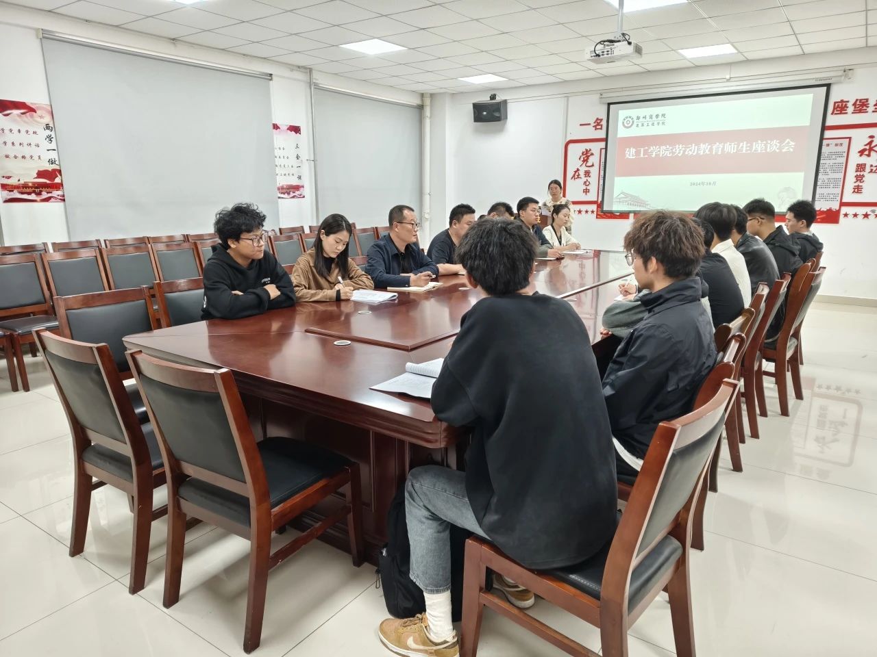 为扎实做好劳动教育工作,畅通学院与同学们沟通交流渠道,擦亮劳动教育育人底色,助力打造郑商劳动品牌特色,10月17日中午,建工学院于亚泽楼113会议室召开劳动教育师生座谈会,建工学院党委书记朱宏东、行政秘书兼团委书记刘帅、24级辅导员及全院室内室外劳动委员参加。会议由劳动教育专项组负责人张愉愉主持。