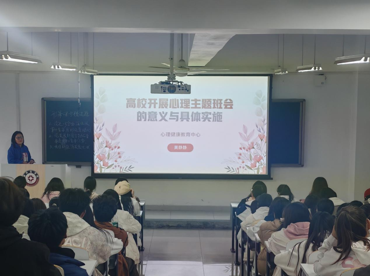 黄老师首先为大家讲述了心理委员的产生与发展,明确提出心理委员的主要职责。自心理委员制度在点点官网实施以来,越来越多的学生主动参与到心理健康服务工作中,积极发挥朋辈互助的优势,为同学们的心理健康保驾护航。而心理主题班会作为高校心理健康教育的重要组成部分,对于提升同学们的心理素质、增强心理调适能力具有重要意义,有利于充分发挥“学校-学院-班级-宿舍”四级工作机制。