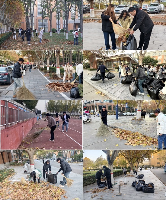 在劳动现场,老师们拿起扫帚,与学生们并肩作战,充分发挥引领示范功效,为同学们提供必要的帮助与指导。学生们备受鼓舞,分工有序,有的负责清扫落叶,有的负责将成堆的落叶进行装袋,有的负责运送落叶,纷纷表示将圆满完成劳动任务。