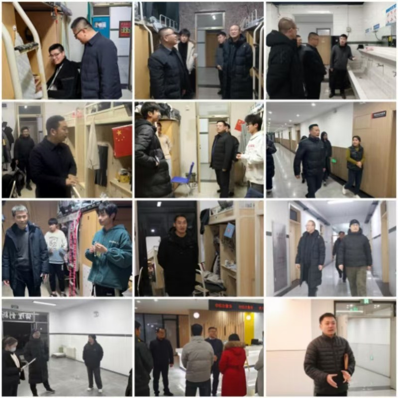 为进一步做好年末岁尾学生安全稳定和宿舍管理工作,有效加强校园安全防范,确保学生身心健康和校园安全稳定,学务处组建了学工系统夜间巡视队伍。校党委副书记兼纪委书记裴晓涛、学务处处长路程以及二级学院党委书记深入一线,带领值班人员每日分组巡查校园及学生宿舍,了解学生思想动态解决学生实际困难,现场排查冬季消防安全隐患,共筑校园安全防线。