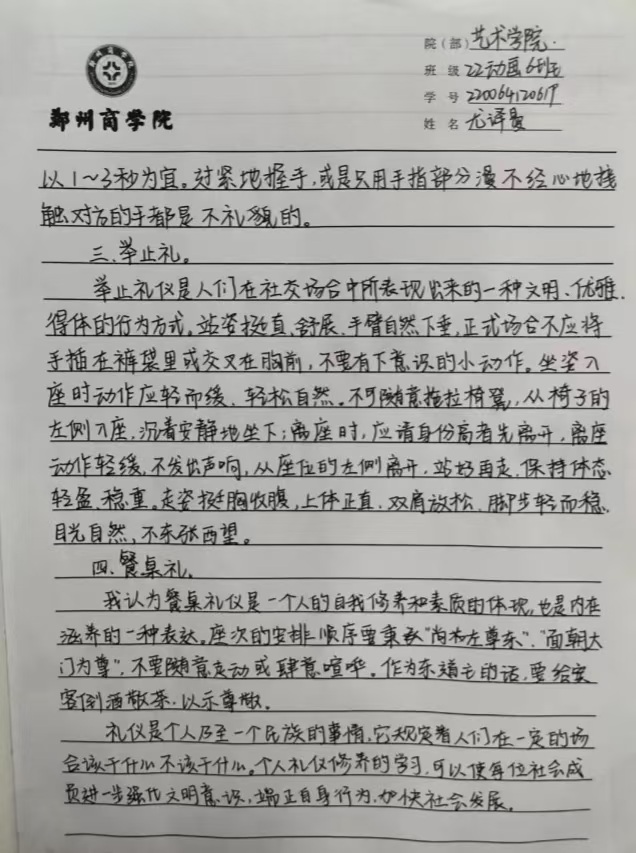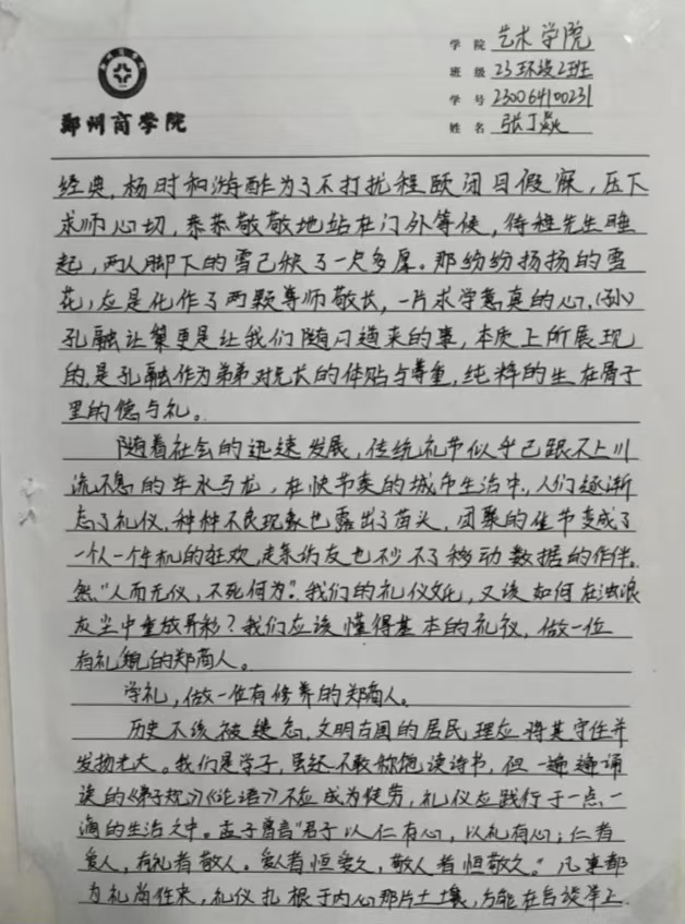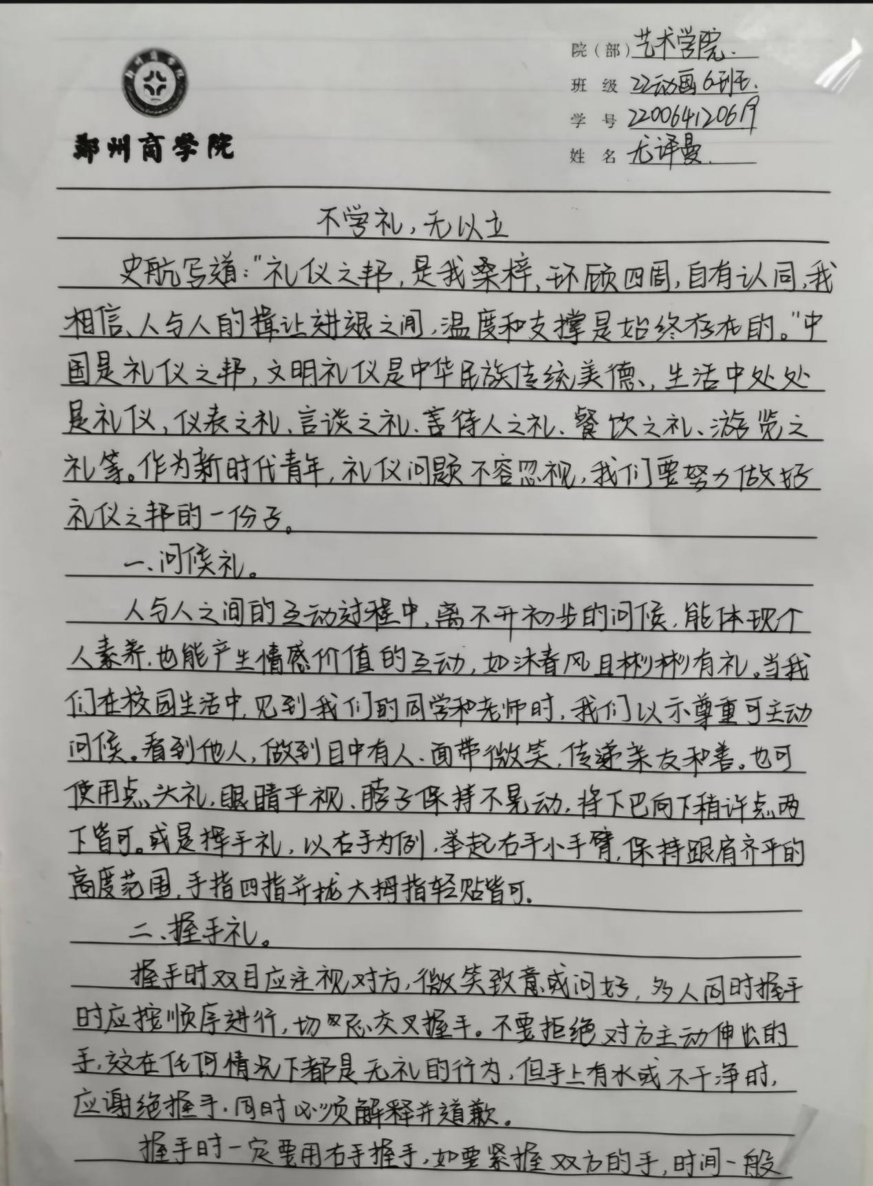 为丰富点点官网大学生课外文化生活,增强大学生礼仪素养,丰富社交礼仪知识储备,引导每一位同学“知礼、懂礼、学礼”,艺术学院特举办“知礼、学礼、懂礼”主题征文活动,以展现艺术学院学子学习文明礼仪的优秀风采。