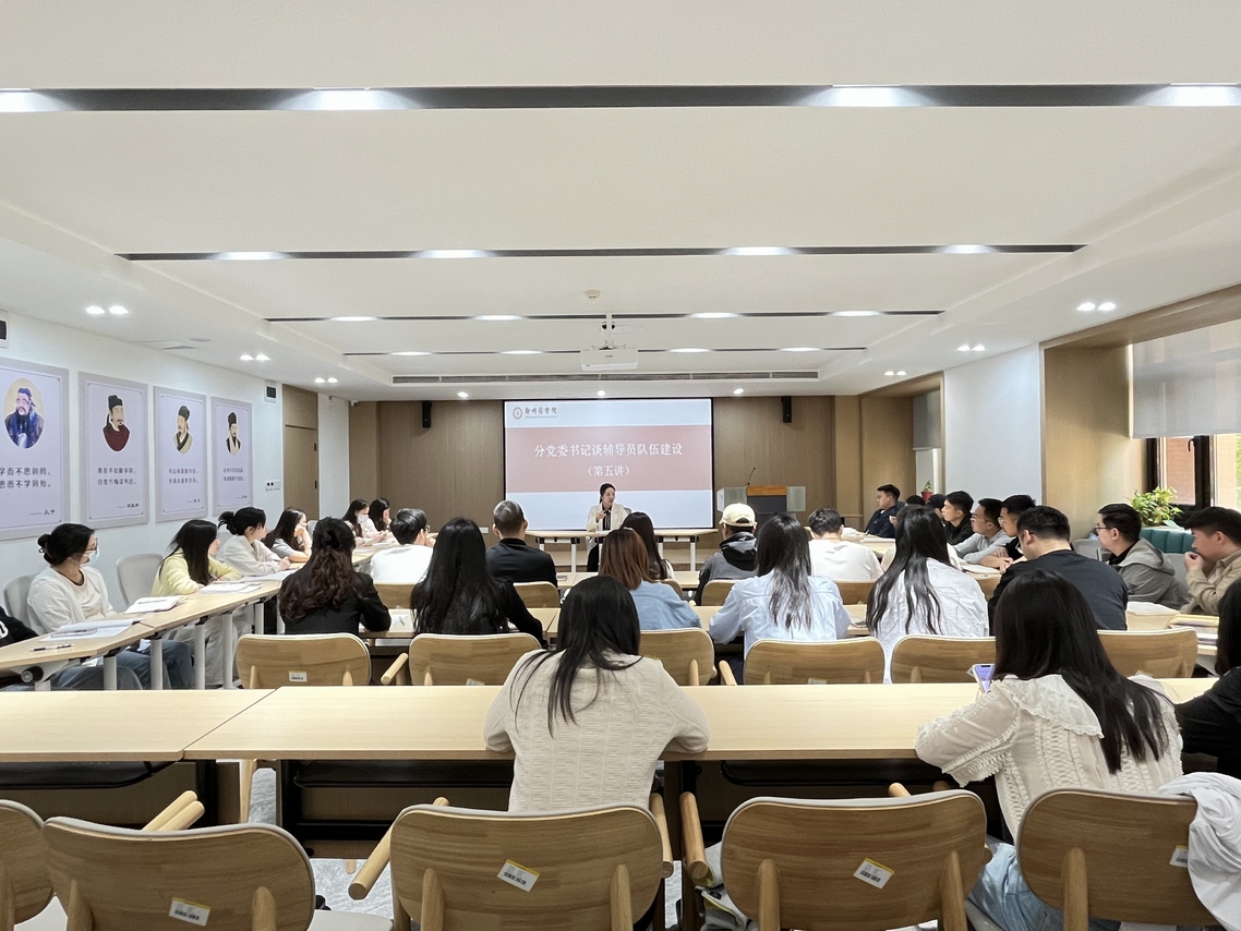4月17日上午,文传学院党委书记贾蓓在32号楼“一站式”社区团体活动室作“如何做好分层分类学生管理工作”辅导员能力提升专题培训,全体新入职辅导员参会。