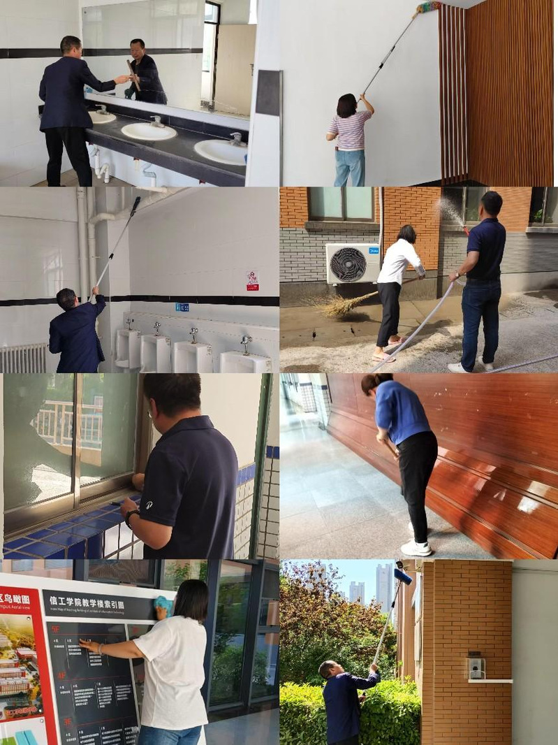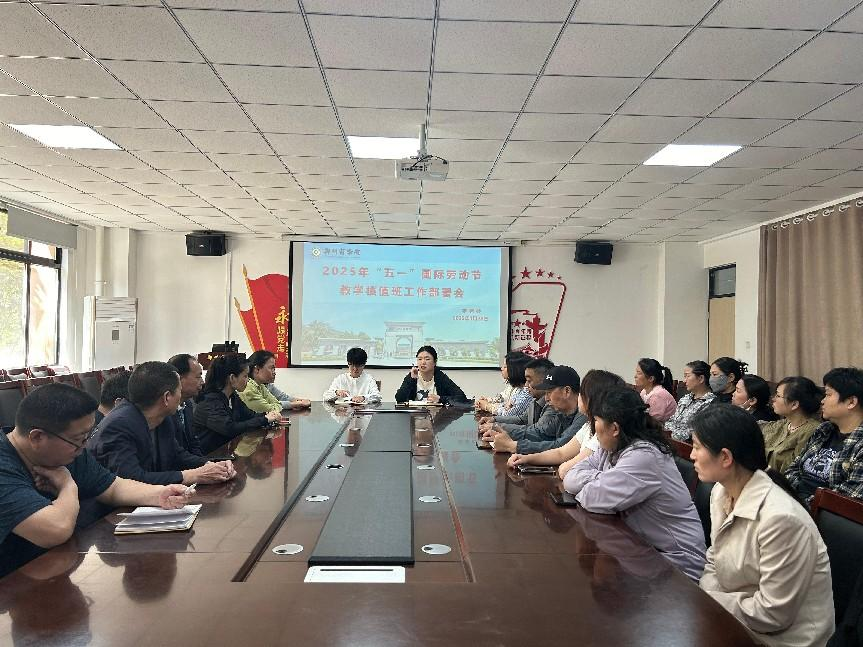 为切实做好“五一”假期间在校师生的安全管理和服务保障,筑牢校园安全稳定防线,4月28日上午,学务处劳卫科组织召开“五一”国际劳动节教学楼值班工作部署会,并开展教学楼安全卫生大检查,全面排查教学楼各项安全卫生隐患,切实做好教学楼安全卫生工作。