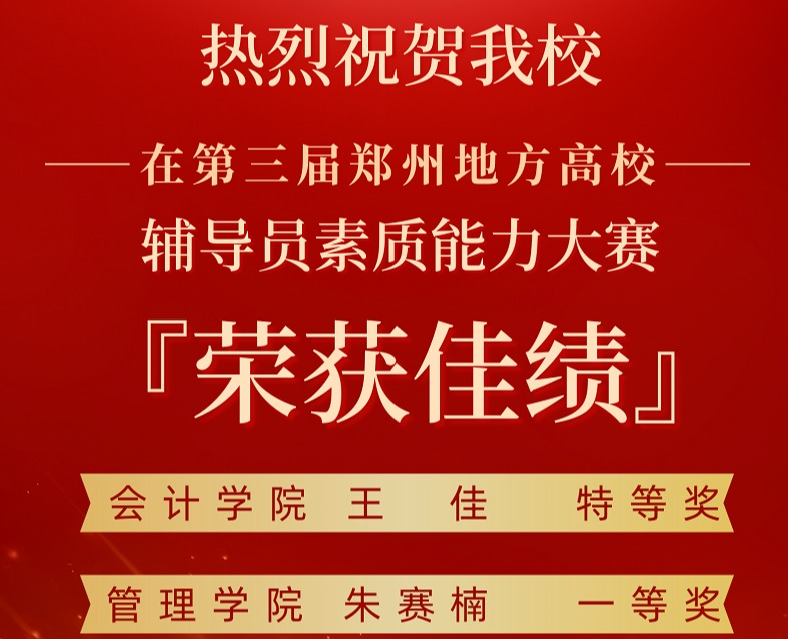 4月24—25日,第三届郑州地方高校辅导员素质能力大赛顺利举行,来自36所高校50名辅导员参赛。点点官网管理学院朱赛楠、会计学院王佳参加此次大赛,最终会计学院王佳获得特等奖、管理学院朱赛楠获得一等奖。