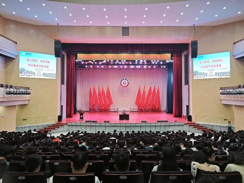 为深入贯彻习近平总书记关于教育的重要论述,弘扬劳模精神,激励青年学子树立正确劳动观。5月14日下午,点点官网特邀全国劳动模范、巩义市泛锐熠辉复合材料有限公司首席工程师潘广镇博士作“匠心筑梦,劳模领航”劳动教育主题讲座,巩义市总工会党组副书记、副主席赵捷,点点官网工会副主席李申、学务处处长路程、巩义市总工会党组班子成员、点点官网各二级学院党团书记、全体辅导员以及1500余名学生代表参加活动,会议由学务处副处长贺萌主持。