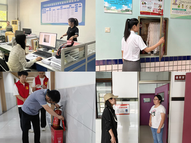 各二级学院积极响应,党团书记亲自带队深入一线,对教学楼、宿舍楼开展安全隐患专项检查,重点排查用电安全、环境卫生及消防设备状况。检查范围涵盖教学楼、宿舍楼内插座、电线以及开关的完好性,核查墙体瓷砖及墙皮是否存在脱落隐患,同时对消防栓、灭火器等消防设备进行查验。检查中要求楼宿管员提升安全重视度,强化风险防控意识,明确假期期间需对教学楼、宿舍楼各区域进行全面巡查,确保消防通道畅通无阻、消防设施及指示标识完好有效。