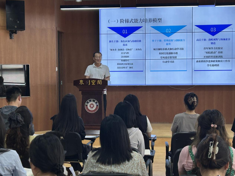 培训会上,朱书记围绕学生干部培养的核心逻辑、实施路径及激励机制展开,结合教育心理学与管理学理论,为辅导员工作提供实践指导。他讲到,学生干部作为连接学校与学生的关键纽带,其培养质量直接影响辅导员工作效能与学生发展。一是构建分层分类培养体系,搭建阶梯式能力培养模型、双导师制成长支持体系,重在能力筑基到领袖锻造。二是创建发展性激励、荣誉性激励、支持性激励三维度激励机制,激活内驱力与价值认同。三是建立三维考核机制。建立“同学-辅导员-自我”三维评价与“负面清单”制度。