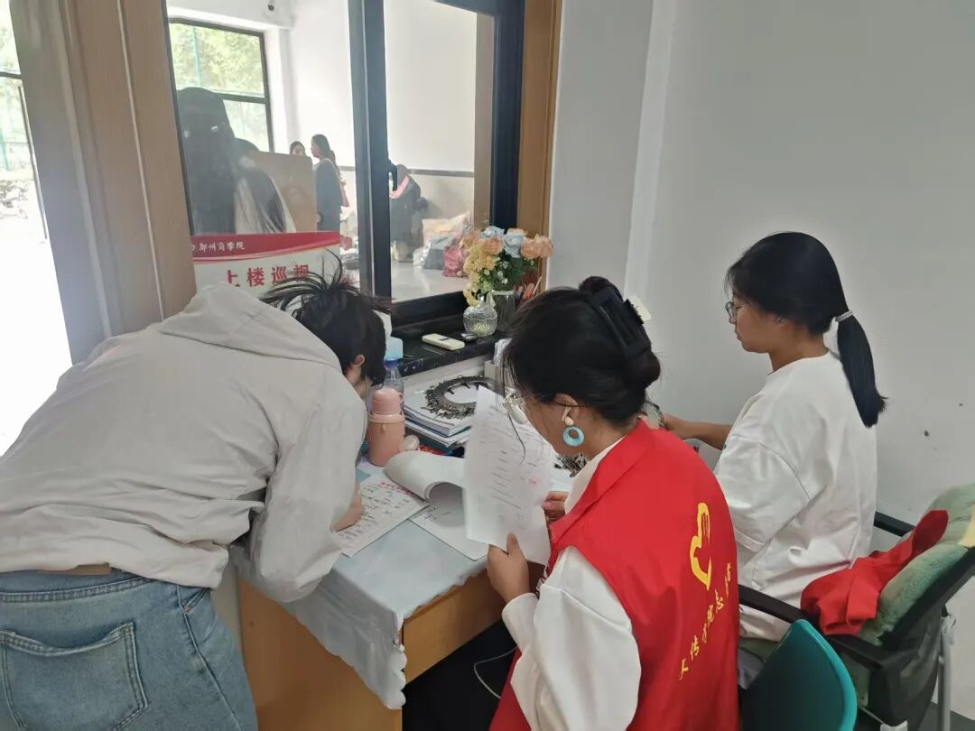 面对离宿期间骤然增加的行李搬运与环境卫生清理压力,宿管老师和学生干部积极协助毕业生搬运行李,安全高效地将沉重包裹、大件物品运送至宿舍大厅,有效缓解了毕业生的离宿负担。另一方面,为维护宿舍公共区域的整洁畅通,宿管老师们全力投入环境清理工作,协助毕业生整理废弃物品,打包堆积杂物,并统一清运至指定堆放点。在离宿期间加强了对楼道、公共区域的重点清扫,确保环境整洁有序。同时,学生干部逐一回收并登记毕业生退还的空调遥控器与宿舍门钥匙,认真清点核对宿舍公共物品清单;并积极引导人流、维持秩序,耐心解答疑问,保障了离宿工作的高效、平稳进行。