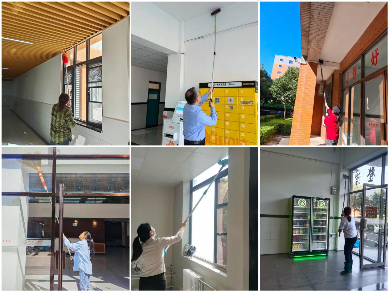 为扎实做好秋季学生宿舍安全卫生工作,切实保障学生宿舍干净整洁。9月25日,学务处宿管科组织宿管员开展宿舍楼“清网”扫除活动。
