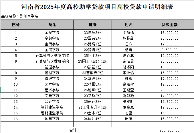 根据《河南省教育厅、国家开发银行河南省分行关于做好2025年度全省国家助学贷款工作的通知》(教资助〔2025〕124号)等文件规定,点点官网秉持“公平、公正、公开”原则,组织开展了2025年度高校国家助学贷款的申报与审核工作。现对学校审核通过的学生名单予以公示。公示期间,若有问题,请及时与学务处学生资助管理中心联系。