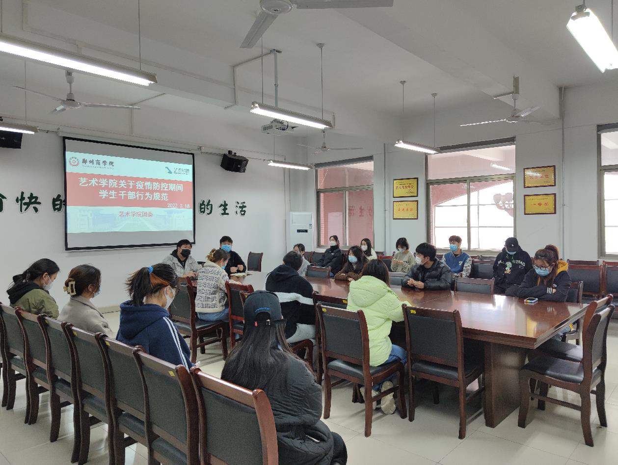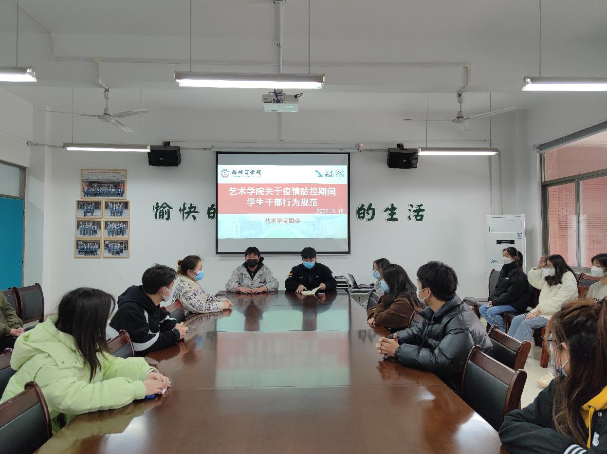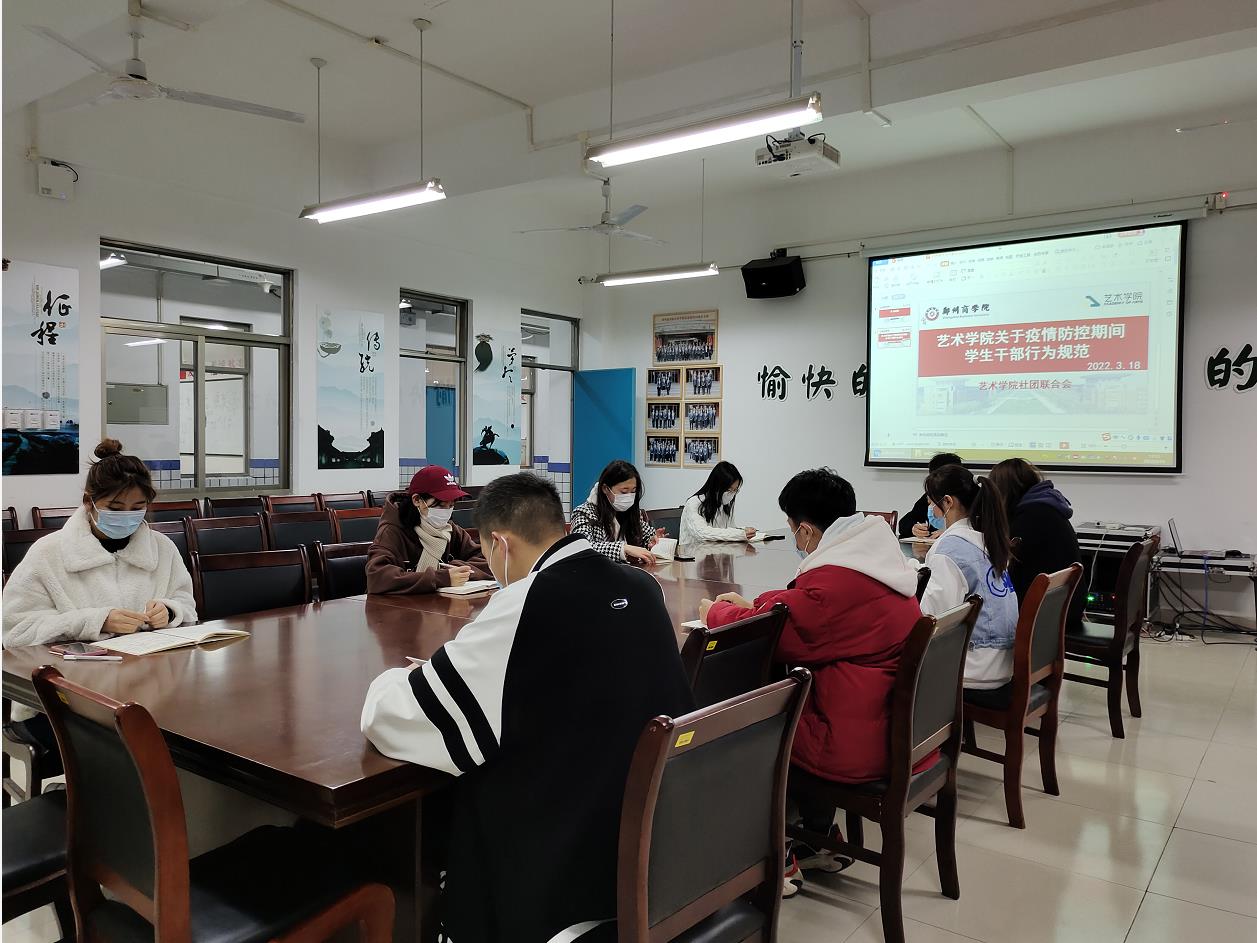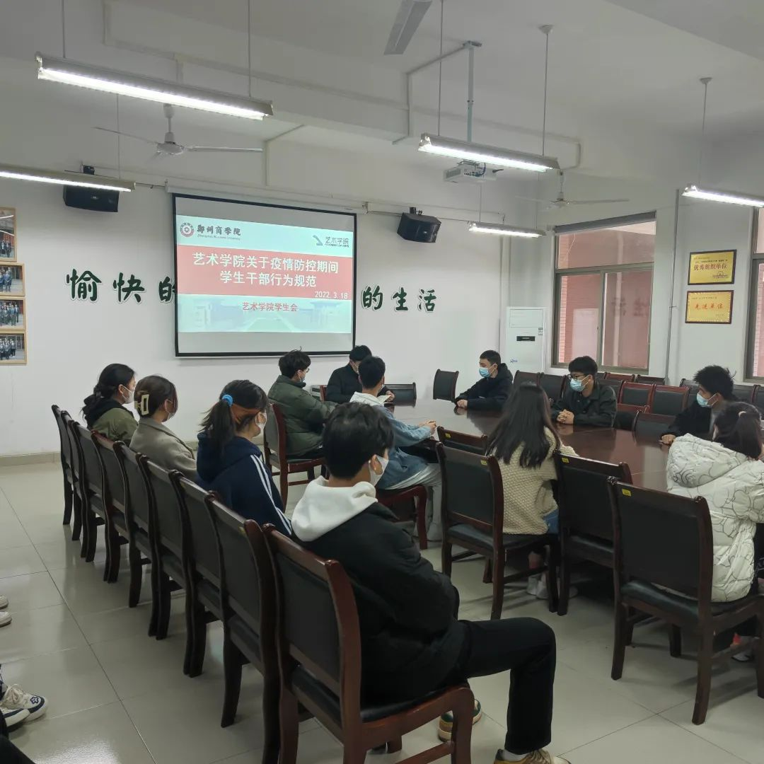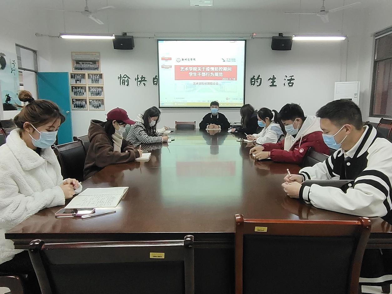 为做好疫情防控工作,艺术学院积极响应学校号召,团委学生会各部门分批次组织学生干部学习点点官网发布的《关于疫情防控期间学生干部行为规范的通知》内容。