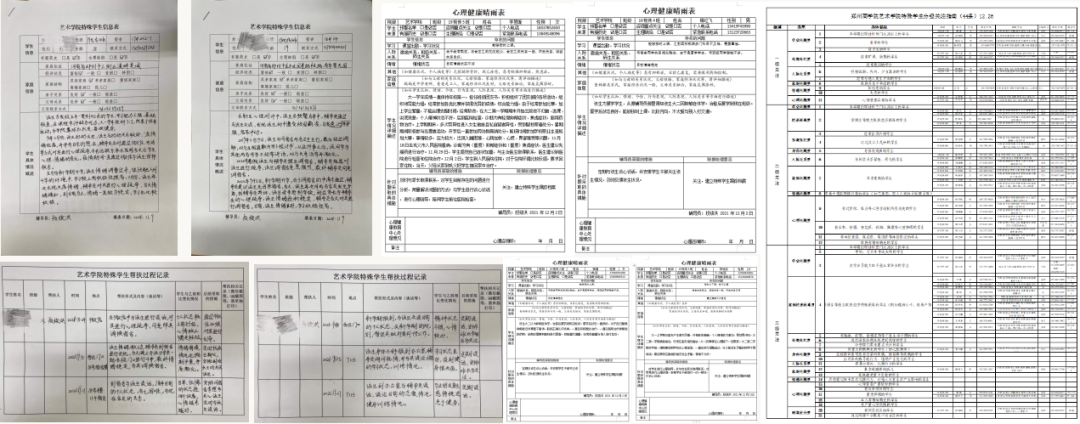 通过心理普查、taptap点点特殊学生排查和《艺术学院特殊学生分类关注指南》等工作举措,较为全面的掌握学生心理状况,建立特殊学生心理台账。本学年分类关注学生48人,跟踪辅导特殊学生7人,与特殊学生进行谈心谈话214次,与学生家长沟通112次,同时安排学生干部、学生党员建立一对一帮扶18人次,确保学生身心健康。