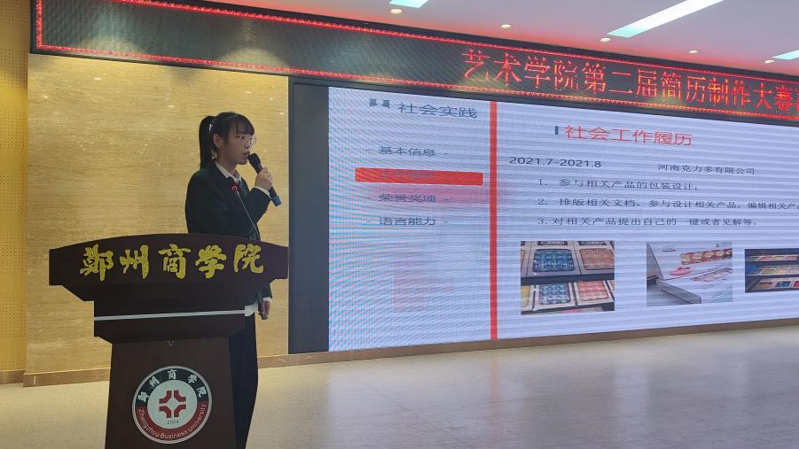 为提高就业竞争力,引导大学生意识到简历的重要性,尽早地掌握写简历的技巧,加强关于设计与排版等相关知识的学习,启发大学生的创新思维,艺术学院于2022年5月13日在自立楼报告厅举办了简历制作大赛决赛,艺术学院党委书记周余、团委书记刘健、20级和21级全体辅导员出席此次比赛。