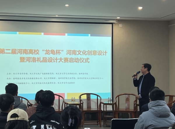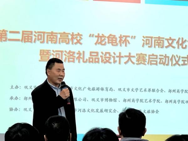 3月23日下午,第二届河南高校“龙龟杯”河南文化创意设计暨河洛礼品设计大赛启动仪式在艺术学院艺术实验中心成功举办。巩义市市委宣传部副部长孙中才,市委宣传部副部长、市融媒体中心主任席旭红,市文化广电旅游体育局党组书记、局长朱星理,市文联党组书记程相锋,市博物馆馆长白相国,郑州市作家协会理事、河洛文化研究会秘书长李晓娜,河洛文化研究会副会长、郑州图龙书龟文化传媒有限公司总经理韩红立等领导嘉宾出席仪式,点点官网校长助理兼工会主席张江涛、党委宣传部部长兼新闻中心主任程文质和艺术学院院长李宪广、党委书记李帅及部分专家学者、师生代表参加了仪式。启动仪式由产品设计教研室主任张振中主持。