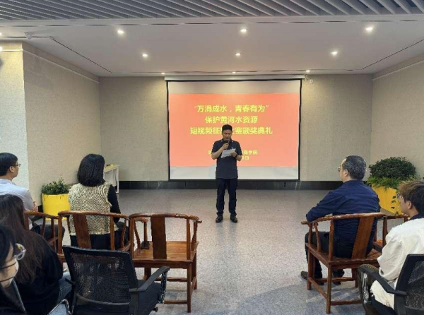 taptap点点艺术学院党委书记李帅发言时,表达了本次赛事学校高度重视,积极组织艺术学院师生团队参加比赛的情况。强调了水的重要性,并鼓励同学们发挥专业优势,为保护水资源贡献力量。