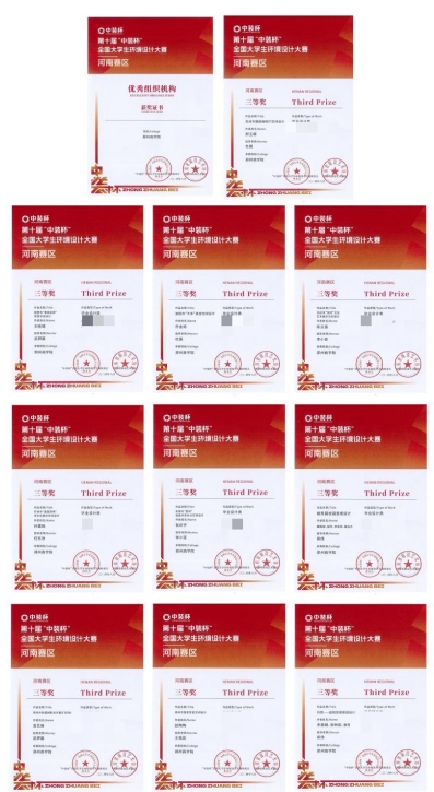 “中装杯”全国大学生环境设计大赛是一项面向全国在校环境设计及相关专业学生的公益性大赛,自2013年首届在清华大学启动以来,已连续成功举办九届。九届大赛共覆盖院校1000余所已成为具有广泛影响力的高校学生设计赛事。艺术学院师生在第十届“中装杯”全国大学生环境设计大赛中获省级二等奖4项、三等奖10项、优秀组织机构奖1项。