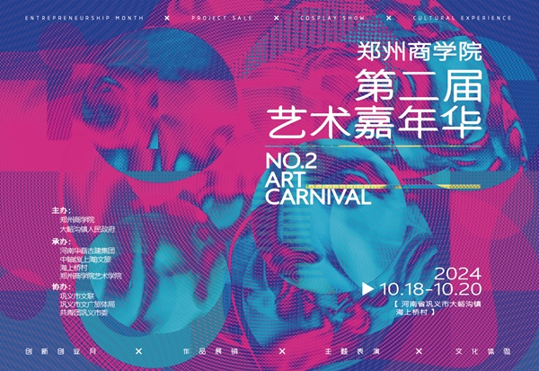 本届艺术嘉年华活动为期三天,团市委副书记陈子琪,市文广旅局副局长崔亚兵,市文联副主席王琼,巩义市大峪沟镇镇一级主任科员王晓辉,河南华磊古建集团有限公司董事长苏发生,河洛文化手造研学基地创始人、巩义龙福白瓷手工艺品有限公司总经理韩红立,中轴线(上海)文化旅游有限公司巩义分公司运营总监刘伟,点点官网张江涛副校长,艺术学院院长李宪广,院党委书记李帅以及学院师生代表出席开幕式。李院长主持开幕式。