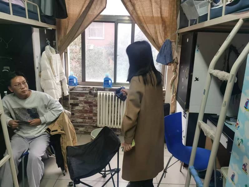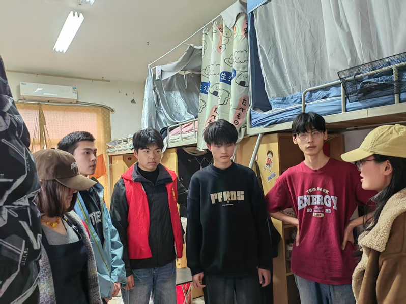 辅导员老师们在宿舍楼内逐层逐间走访,仔细检查每个宿舍的卫生状况,包括清洁程度、垃圾处理及个人物品整齐程度等。同时,认真检查了宿舍的消防设施,确保灭火器、烟雾报警器等设备的完好有效,并提醒同学们不私拉乱接电线,做到安全用电。在活动中,学生们主动参与到卫生清理工作中,大家齐心协力清理宿舍区域,营造了一个干净整洁的生活环境。