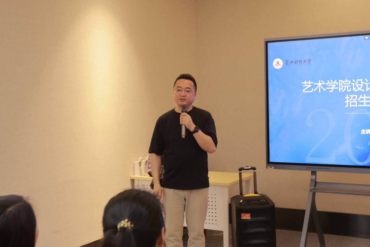 宣讲会上,吴院长从学院简介、招生学科及研究方向、导师及教学团队简介、培养档案、就业情况这五个方面展开详细讲授。他首先介绍了兰州财经大学艺术学院的发展历程与现状,作为甘肃省高校中最早创办艺术设计(本科)专业的学院,该校现拥有“设计学”一级学科硕士学位授权点、“设计学”省级重点学科,学科实力雄厚。接着,吴院长重点阐述了当前艺术学院的教学团队构成以及招生学科的主要领域,涵盖视觉传达与媒体设计、设计历史与理论、绘画、公共艺术和跨媒体艺术等前沿方向,并结合考试科目,从参考书籍、内容大纲以及学习方法等几个方面给同学们做了深入浅出的分享,为同学们备考提供了清晰的方向与实用的建议。随后,吴院长对兰州财经大学艺术学院的硕士人才培养方案和毕业生的就业情况进行了详细讲授,展示了学院在人才培养与就业服务方面的卓越成就,进一步增强了同学们报考的信心。他鼓励同学们努力学习,认真准备考研,积极投身艺术研究与实践领域,为艺术事业的发展贡献自己的力量。