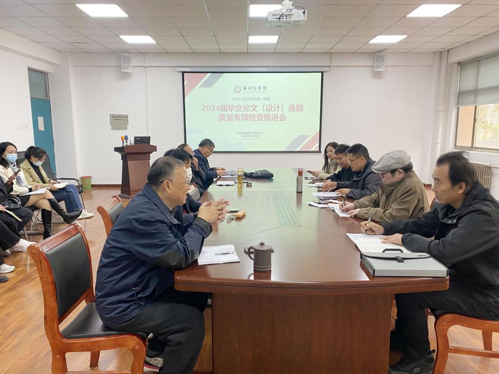 为做好毕业论文(设计)选题质量检查,我中心于11月9日在4号楼202会议室召开了2024届毕业论文(设计)选题工作推进会。质评中心全体成员、各学院质监员老师参会,会议王玉东老师主持。
