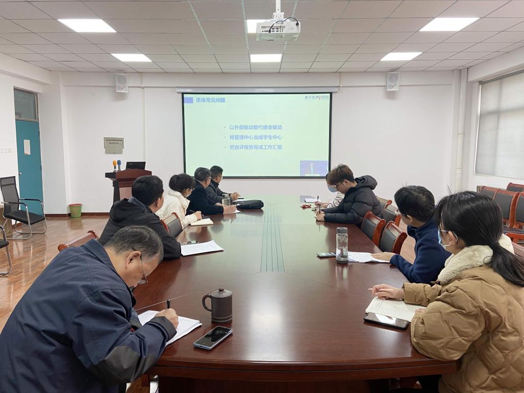 11月28日,质评中心在四号教学楼202会议室组织参加由麦可思研究主办的“质保背后的逻辑:高校质保常见问题及其应对”的线上主题讲座,质评中心全体人员、二级学院质监员参加学习。