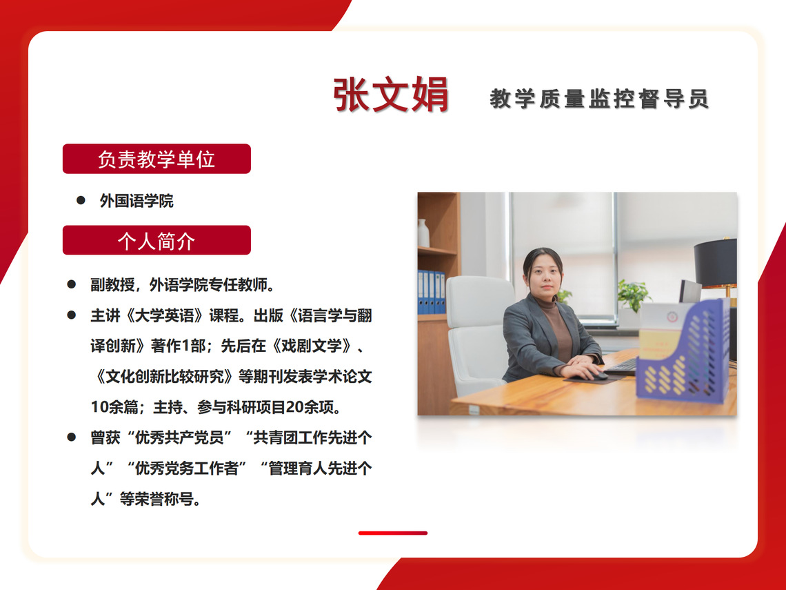 教学质量监控督导员 外国语学院 张文娟